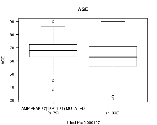 amp_18p11.31 cnv correlated to 'AGE' and 'HISTOLOGICAL.TYPE'.