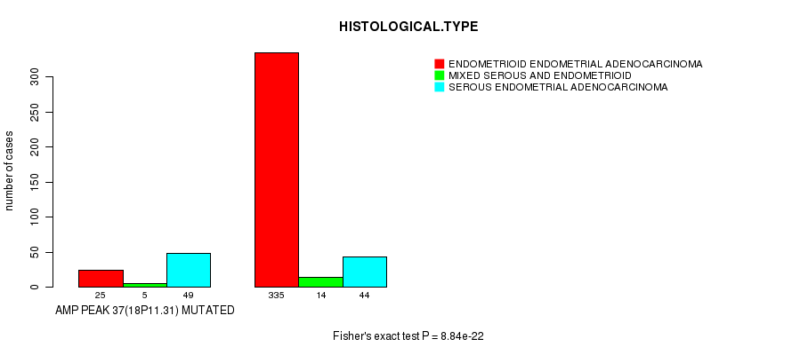 amp_18q11.2 cnv correlated to 'HISTOLOGICAL.TYPE'.