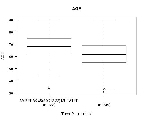 amp_20q13.33 cnv correlated to 'AGE' and 'HISTOLOGICAL.TYPE'.