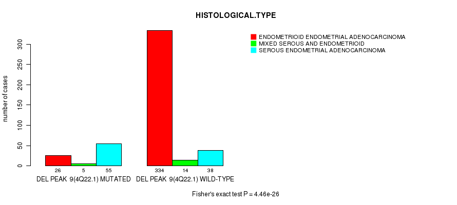 del_9p23 cnv correlated to 'HISTOLOGICAL.TYPE'.
