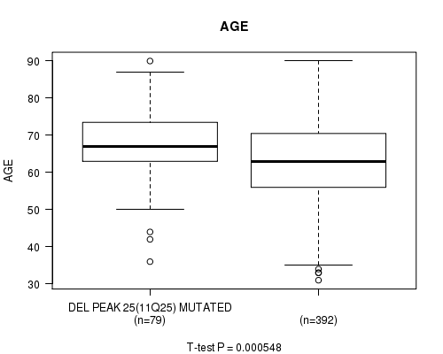 Figure S175. Get High-res Image Gene #98: 'del_xp21.1' versus Clinical Feature #2: 'AGE'