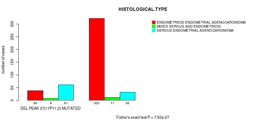 del_17p11.2 cnv correlated to 'AGE' and 'HISTOLOGICAL.TYPE'.