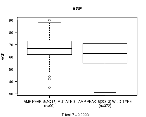 amp_2q13 cnv correlated to 'AGE' and 'HISTOLOGICAL.TYPE'.