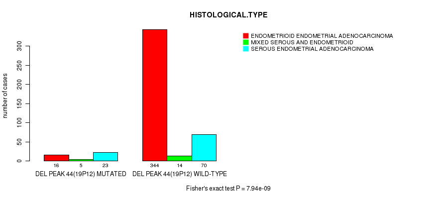 Figure S165. Get High-res Image Gene #93: 'del_19q13.43' versus Clinical Feature #3: 'HISTOLOGICAL.TYPE'