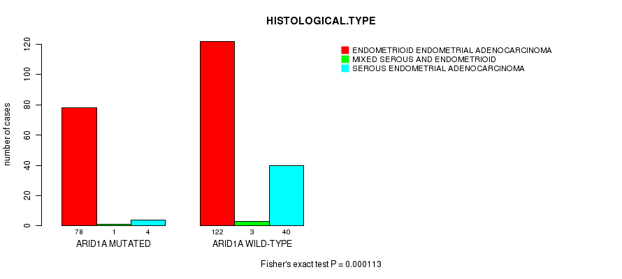 ARID1A mutation correlated to 'HISTOLOGICAL.TYPE'.