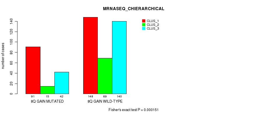 8q gain cnv correlated to 'CN_CNMF', 'RPPA_CNMF', 'MRNASEQ_CNMF', 'MRNASEQ_CHIERARCHICAL', and 'MIRSEQ_CNMF'.