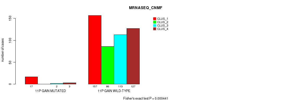 11p gain cnv correlated to 'CN_CNMF' and 'MRNASEQ_CNMF'.