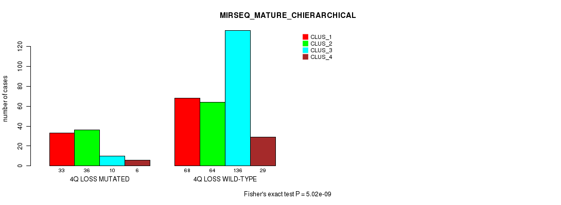 4q loss cnv correlated to 'CN_CNMF', 'METHLYATION_CNMF', 'MRNASEQ_CNMF', 'MRNASEQ_CHIERARCHICAL', 'MIRSEQ_CNMF', 'MIRSEQ_CHIERARCHICAL', 'MIRSEQ_MATURE_CNMF', and 'MIRSEQ_MATURE_CHIERARCHICAL'.