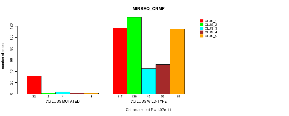 7q loss cnv correlated to 'CN_CNMF', 'METHLYATION_CNMF', 'MRNASEQ_CNMF', 'MRNASEQ_CHIERARCHICAL', 'MIRSEQ_CNMF', 'MIRSEQ_CHIERARCHICAL', and 'MIRSEQ_MATURE_CHIERARCHICAL'.