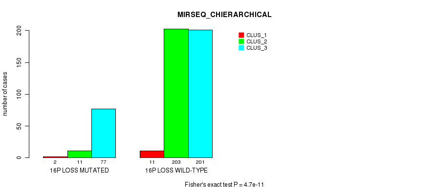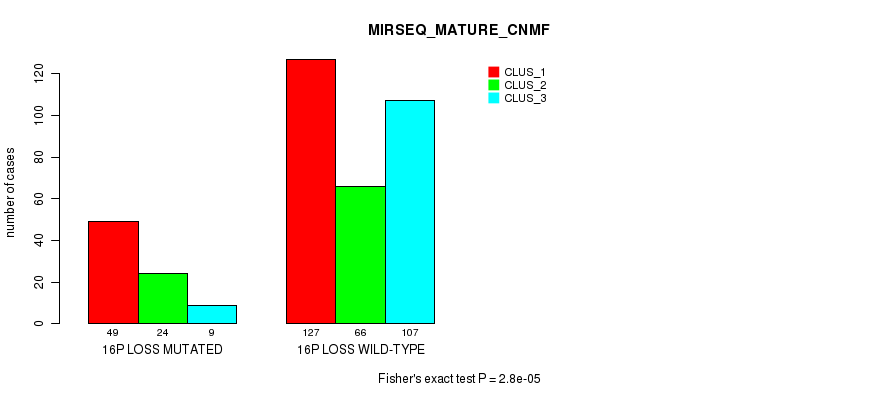 16p loss cnv correlated to 'MRNA_CHIERARCHICAL', 'CN_CNMF', 'METHLYATION_CNMF', 'MRNASEQ_CNMF', 'MRNASEQ_CHIERARCHICAL', 'MIRSEQ_CNMF', 'MIRSEQ_CHIERARCHICAL', 'MIRSEQ_MATURE_CNMF', and 'MIRSEQ_MATURE_CHIERARCHICAL'.