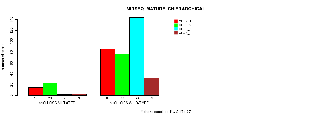 Figure S378. Get High-res Image Gene #78: '21q loss' versus Molecular Subtype #10: 'MIRSEQ_CHIERARCHICAL'