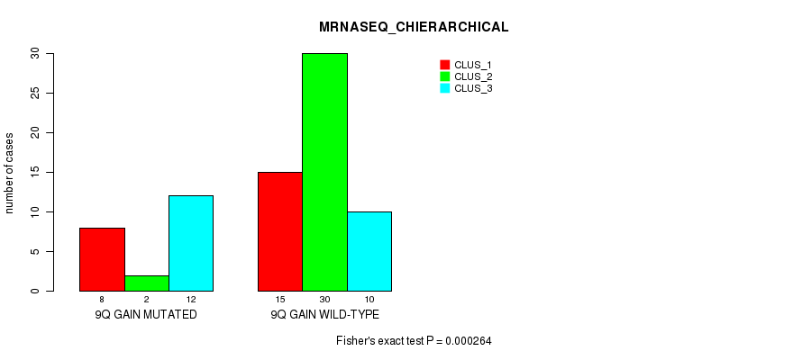 9q gain cnv correlated to 'CN_CNMF' and 'MRNASEQ_CHIERARCHICAL'.
