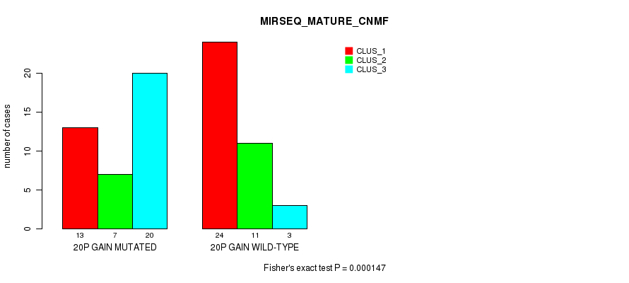Table S40. Gene #36: '20p gain' versus Molecular Subtype #7: 'MIRSEQ_MATURE_CNMF'