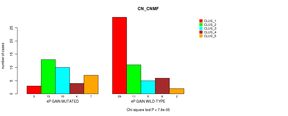 4p gain cnv correlated to 'CN_CNMF', 'MRNASEQ_CNMF', and 'MRNASEQ_CHIERARCHICAL'.