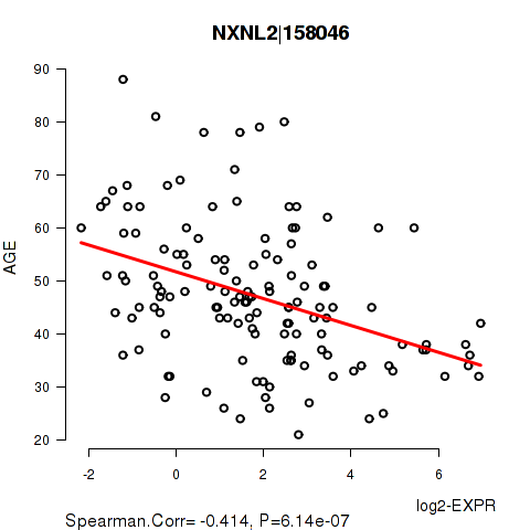 | NXNL2|158046 | -0.4137 | 6.141e-07 | 0.0112 |