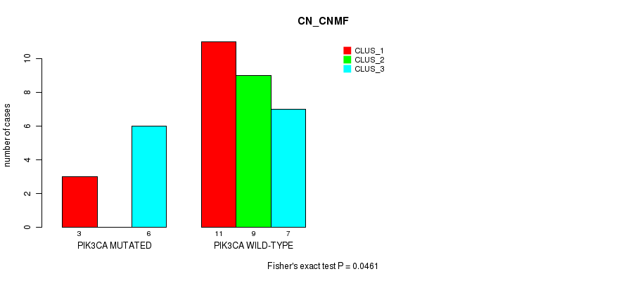 Table S3. Gene #1: 'PIK3CA MUTATION STATUS' versus Molecular Subtype #3: 'MRNASEQ_CNMF'