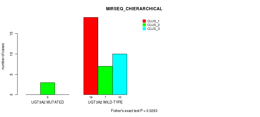 Figure S2. Get High-res Image Gene #3: 'UGT3A2 MUTATION STATUS' versus Molecular Subtype #6: 'MIRSEQ_CHIERARCHICAL'