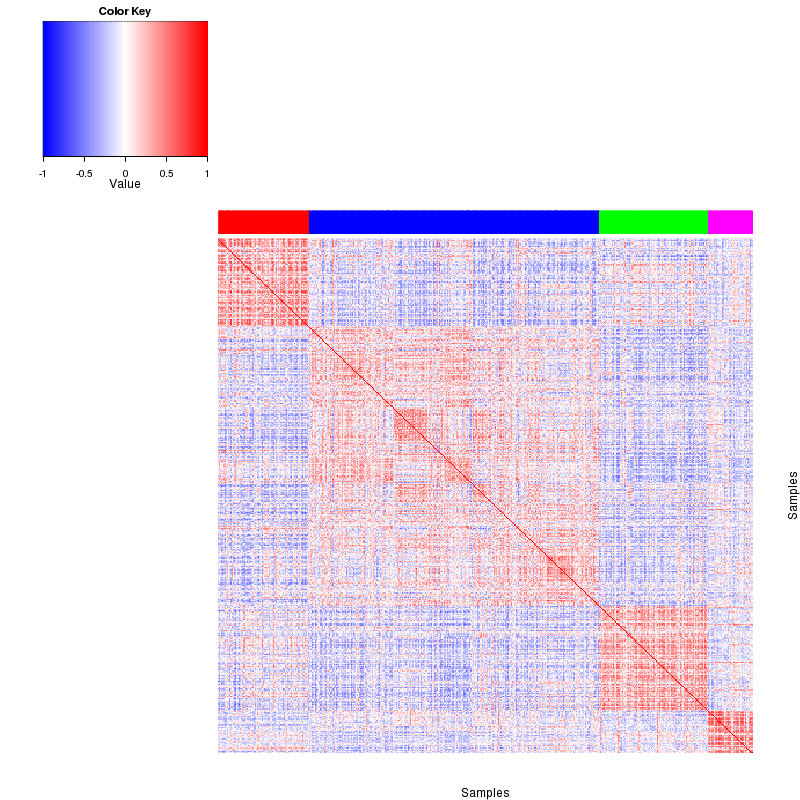 Figure 3.  Get High-res Image The consensus matrix after clustering shows 4 clusters with limited overlap between clusters.