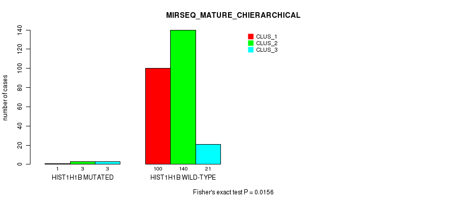 Figure S64. Get High-res Image Gene #34: 'HIST1H1B MUTATION STATUS' versus Molecular Subtype #10: 'MIRSEQ_MATURE_CHIERARCHICAL'