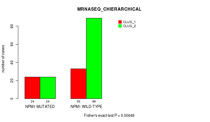 'NPM1 MUTATION STATUS' versus 'MRNASEQ_CHIERARCHICAL'