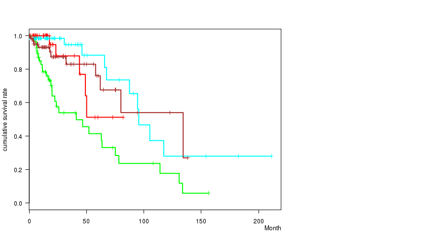 Consensus hierarchical clustering analysis on array-based mRNA expression data identified 4 subtypes that do not correlate to any clinical features.
