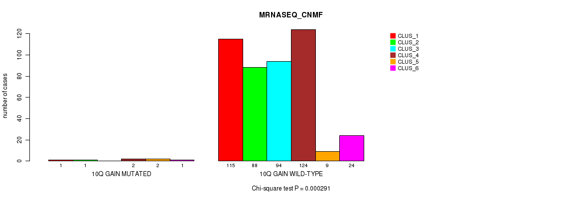 10q gain cnv correlated to 'CN_CNMF' and 'MRNASEQ_CNMF'.