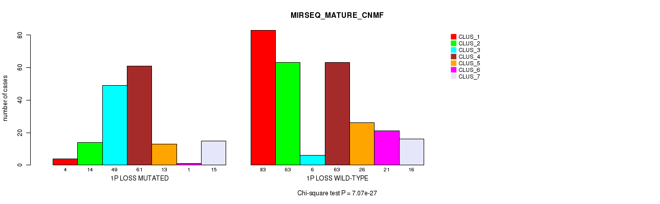 1p loss cnv correlated to 'MRNA_CHIERARCHICAL', 'CN_CNMF', 'METHLYATION_CNMF', 'RPPA_CNMF', 'MRNASEQ_CNMF', 'MRNASEQ_CHIERARCHICAL', 'MIRSEQ_CNMF', 'MIRSEQ_CHIERARCHICAL', 'MIRSEQ_MATURE_CNMF', and 'MIRSEQ_MATURE_CHIERARCHICAL'.