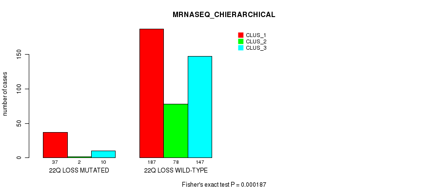 Figure S143. Get High-res Image Gene #78: '22q loss' versus Molecular Subtype #8: 'MRNASEQ_CHIERARCHICAL'