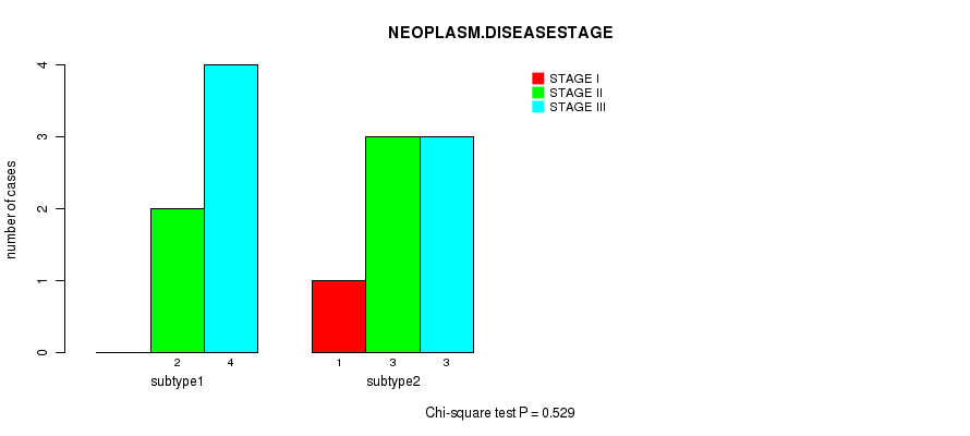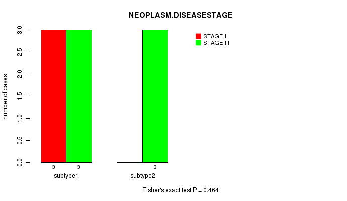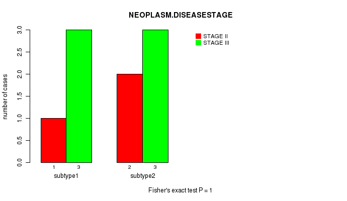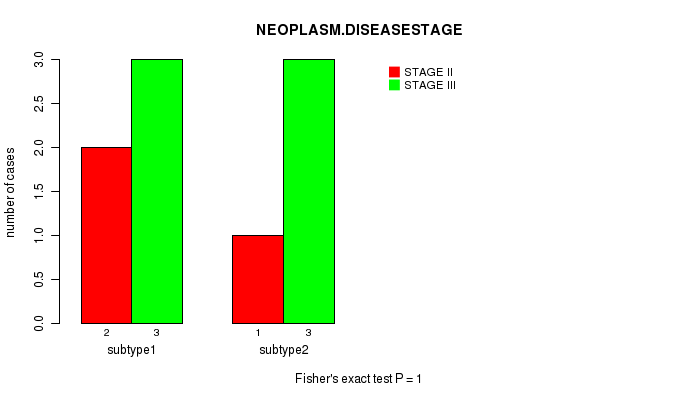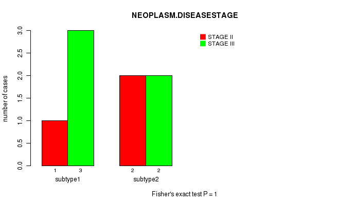 | NEOPLASM DISEASESTAGE | Fisher's exact test |