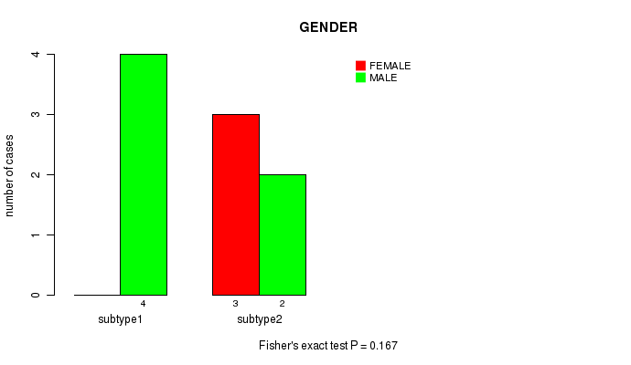 Figure S28. Get High-res Image Clustering Approach #4: 'MIRSEQ CHIERARCHICAL' versus Clinical Feature #7: 'GENDER'