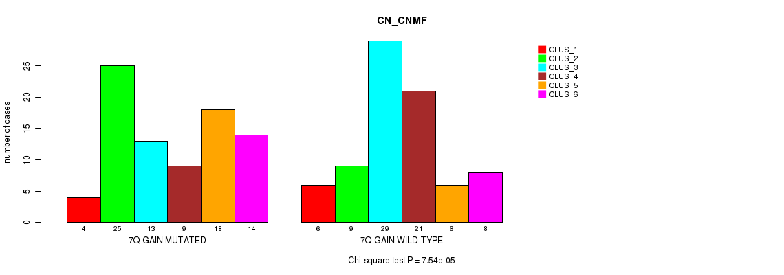 Table S4. Gene #14: '7q gain' versus Molecular Subtype #3: 'CN_CNMF'