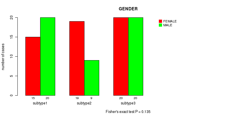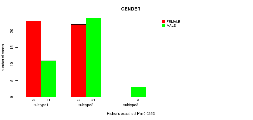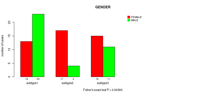 CNMF clustering analysis on sequencing-based mRNA expression data identified 3 subtypes that correlate to 'GENDER'.