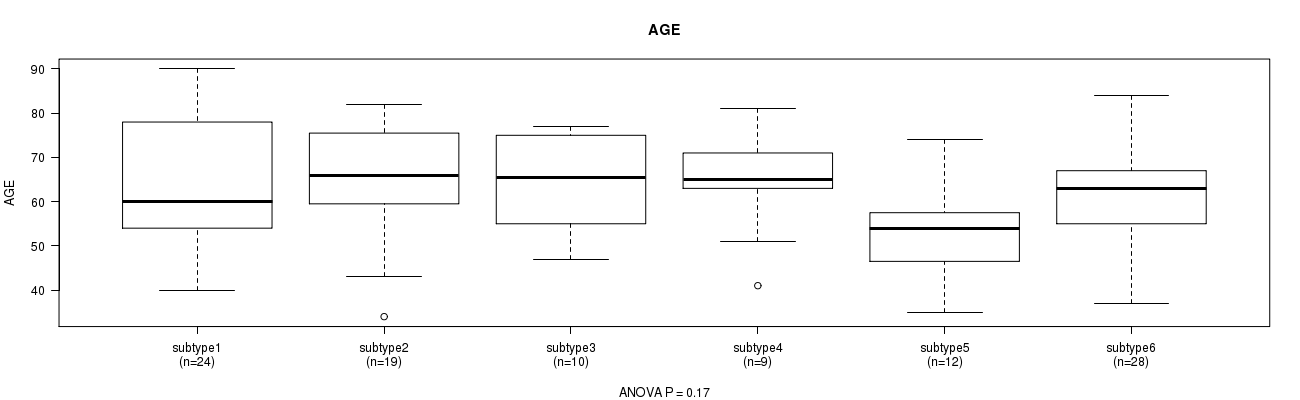 Figure S17. Get High-res Image Clustering Approach #6: 'MIRSEQ CHIERARCHICAL' versus Clinical Feature #2: 'AGE'