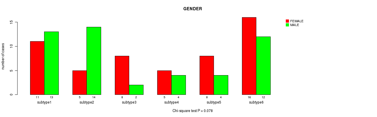 Figure S18. Get High-res Image Clustering Approach #6: 'MIRSEQ CHIERARCHICAL' versus Clinical Feature #3: 'GENDER'