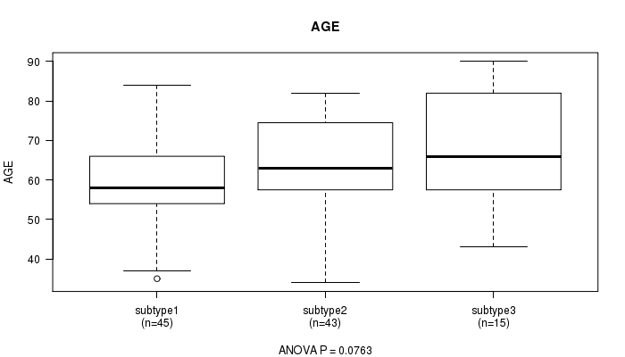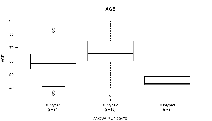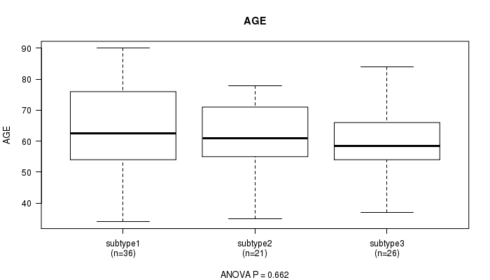 Consensus hierarchical clustering analysis on sequencing-based mRNA expression data identified 3 subtypes that correlate to 'AGE'.