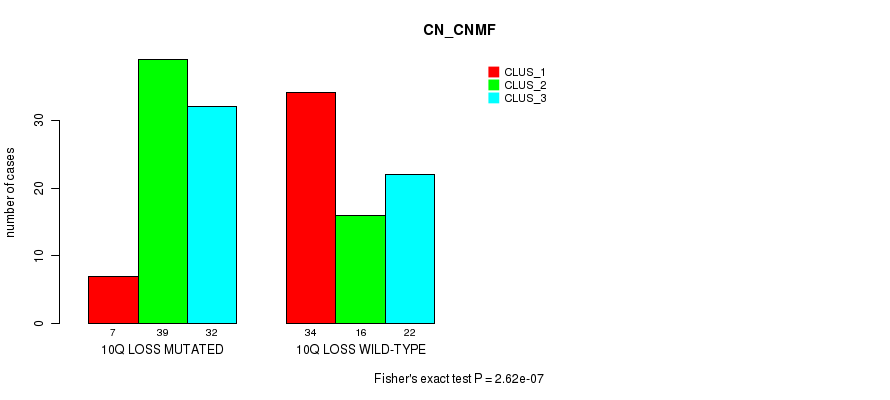 Table S10. Gene #60: '10q loss' versus Molecular Subtype #1: 'CN_CNMF'