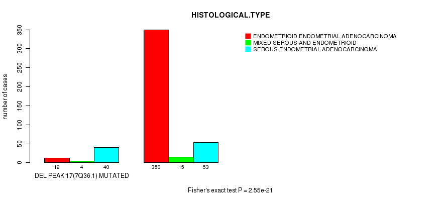Figure S157. Get High-res Image Gene #90: 'del_17q21.31' versus Clinical Feature #3: 'HISTOLOGICAL.TYPE'