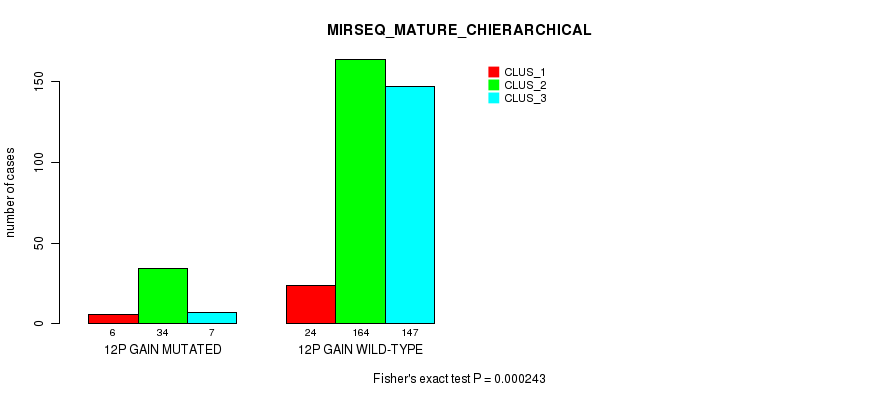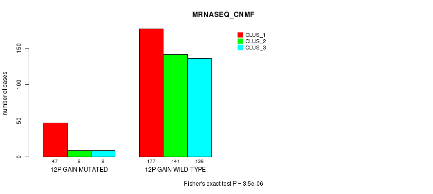 12p gain cnv correlated to 'CN_CNMF', 'METHLYATION_CNMF', 'MRNASEQ_CNMF', 'MRNASEQ_CHIERARCHICAL', and 'MIRSEQ_MATURE_CHIERARCHICAL'.