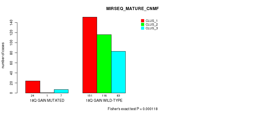 18q gain cnv correlated to 'CN_CNMF', 'METHLYATION_CNMF', 'MRNASEQ_CNMF', 'MRNASEQ_CHIERARCHICAL', 'MIRSEQ_CNMF', 'MIRSEQ_CHIERARCHICAL', 'MIRSEQ_MATURE_CNMF', and 'MIRSEQ_MATURE_CHIERARCHICAL'.