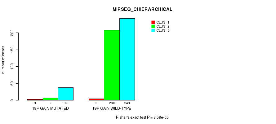 19p gain cnv correlated to 'CN_CNMF', 'MRNASEQ_CNMF', 'MRNASEQ_CHIERARCHICAL', 'MIRSEQ_CNMF', and 'MIRSEQ_CHIERARCHICAL'.
