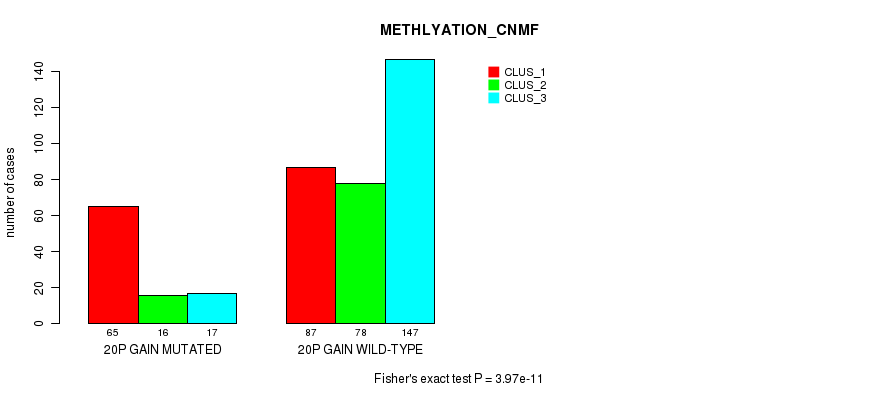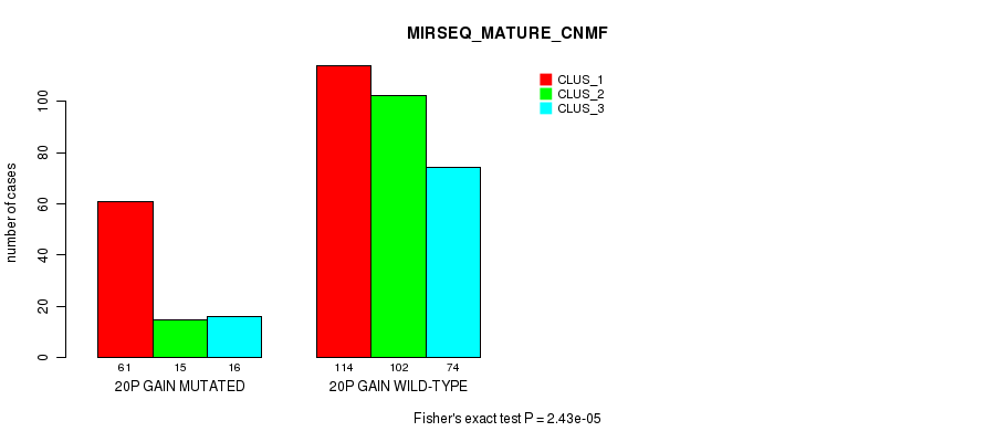20p gain cnv correlated to 'CN_CNMF', 'METHLYATION_CNMF', 'MRNASEQ_CNMF', 'MRNASEQ_CHIERARCHICAL', 'MIRSEQ_CNMF', 'MIRSEQ_CHIERARCHICAL', 'MIRSEQ_MATURE_CNMF', and 'MIRSEQ_MATURE_CHIERARCHICAL'.