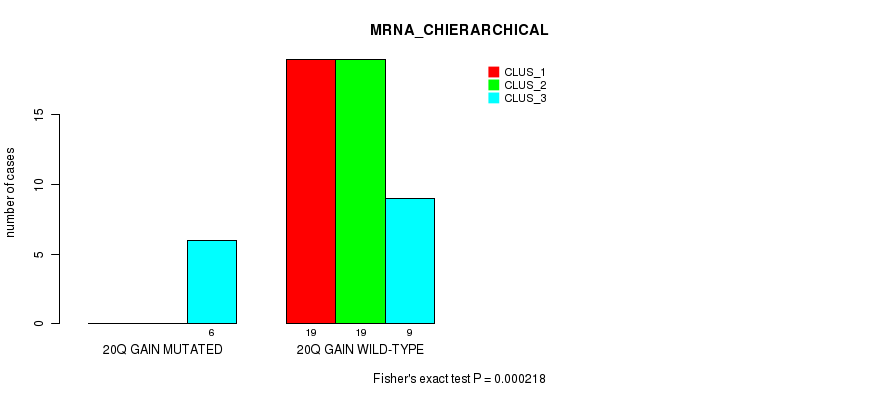 20q gain cnv correlated to 'MRNA_CHIERARCHICAL', 'CN_CNMF', 'METHLYATION_CNMF', 'MRNASEQ_CNMF', 'MRNASEQ_CHIERARCHICAL', 'MIRSEQ_CNMF', 'MIRSEQ_CHIERARCHICAL', 'MIRSEQ_MATURE_CNMF', and 'MIRSEQ_MATURE_CHIERARCHICAL'.