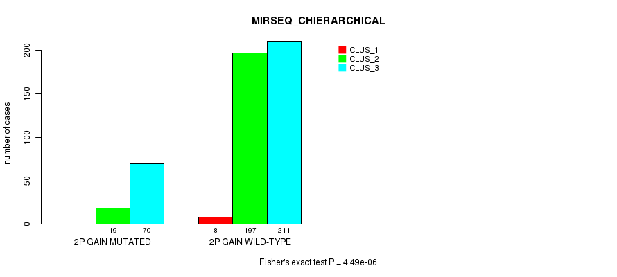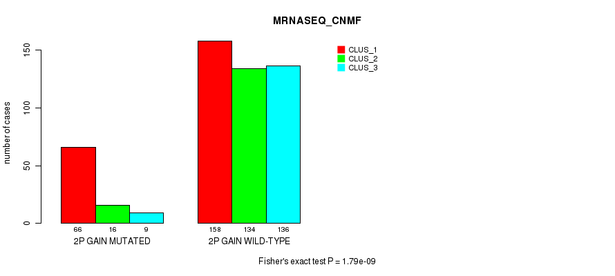 2p gain cnv correlated to 'CN_CNMF', 'METHLYATION_CNMF', 'MRNASEQ_CNMF', 'MRNASEQ_CHIERARCHICAL', 'MIRSEQ_CNMF', 'MIRSEQ_CHIERARCHICAL', 'MIRSEQ_MATURE_CNMF', and 'MIRSEQ_MATURE_CHIERARCHICAL'.