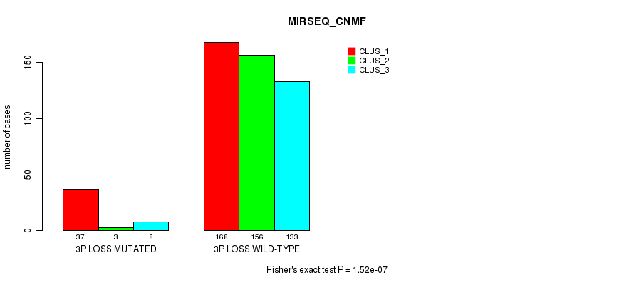 3p loss cnv correlated to 'CN_CNMF', 'METHLYATION_CNMF', 'MRNASEQ_CNMF', 'MRNASEQ_CHIERARCHICAL', 'MIRSEQ_CNMF', 'MIRSEQ_CHIERARCHICAL', and 'MIRSEQ_MATURE_CHIERARCHICAL'.