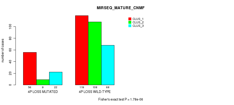 4p loss cnv correlated to 'MRNA_CHIERARCHICAL', 'CN_CNMF', 'METHLYATION_CNMF', 'MRNASEQ_CNMF', 'MRNASEQ_CHIERARCHICAL', 'MIRSEQ_CNMF', 'MIRSEQ_CHIERARCHICAL', 'MIRSEQ_MATURE_CNMF', and 'MIRSEQ_MATURE_CHIERARCHICAL'.
