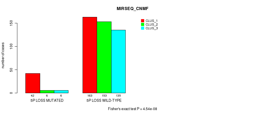 5p loss cnv correlated to 'CN_CNMF', 'METHLYATION_CNMF', 'MRNASEQ_CNMF', 'MRNASEQ_CHIERARCHICAL', 'MIRSEQ_CNMF', 'MIRSEQ_CHIERARCHICAL', and 'MIRSEQ_MATURE_CHIERARCHICAL'.