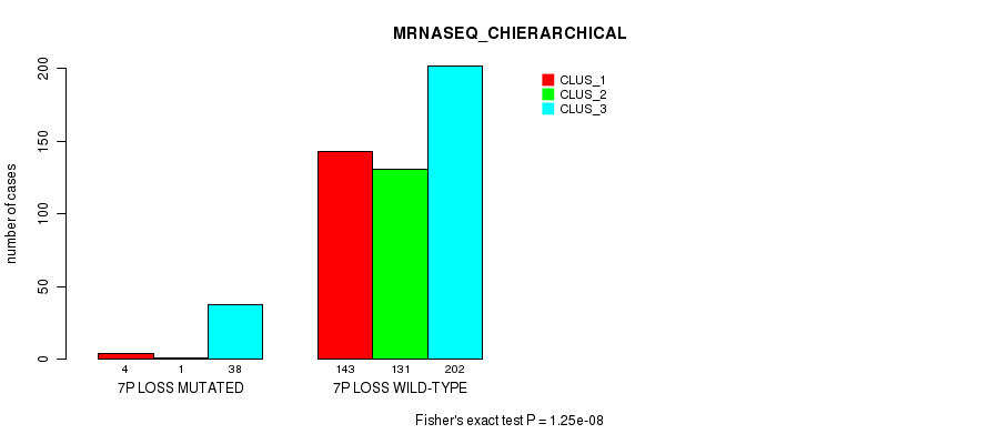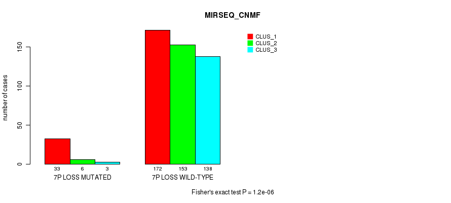 7p loss cnv correlated to 'CN_CNMF', 'METHLYATION_CNMF', 'MRNASEQ_CNMF', 'MRNASEQ_CHIERARCHICAL', 'MIRSEQ_CNMF', and 'MIRSEQ_CHIERARCHICAL'.