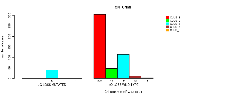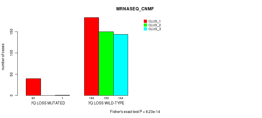 7q loss cnv correlated to 'CN_CNMF', 'METHLYATION_CNMF', 'MRNASEQ_CNMF', 'MRNASEQ_CHIERARCHICAL', 'MIRSEQ_CNMF', 'MIRSEQ_CHIERARCHICAL', and 'MIRSEQ_MATURE_CHIERARCHICAL'.