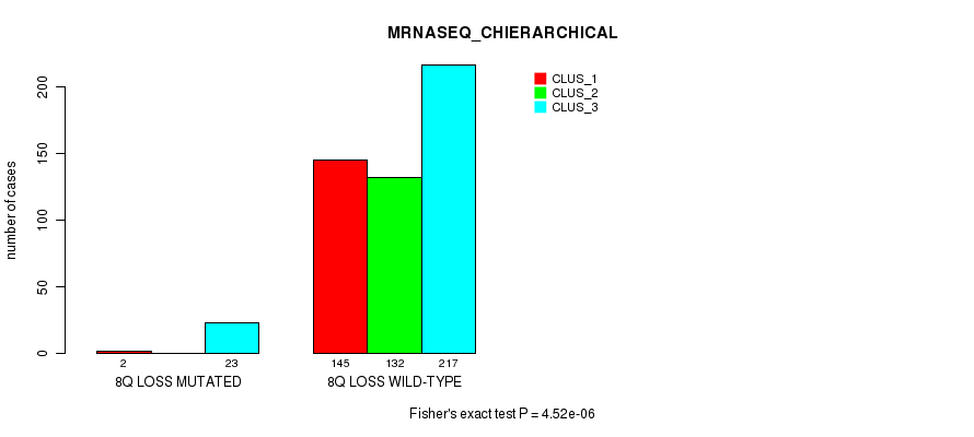 8q loss cnv correlated to 'CN_CNMF', 'METHLYATION_CNMF', 'MRNASEQ_CNMF', 'MRNASEQ_CHIERARCHICAL', 'MIRSEQ_CNMF', and 'MIRSEQ_MATURE_CHIERARCHICAL'.