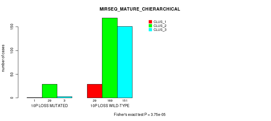 10p loss cnv correlated to 'CN_CNMF', 'METHLYATION_CNMF', 'MRNASEQ_CNMF', 'MRNASEQ_CHIERARCHICAL', 'MIRSEQ_CNMF', 'MIRSEQ_CHIERARCHICAL', and 'MIRSEQ_MATURE_CHIERARCHICAL'.